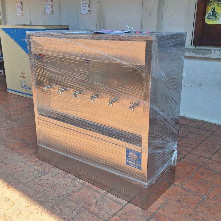 – ตู้กดน้ำเย็นสแตนเลส แบบต่อท่อ 6 ก๊อก