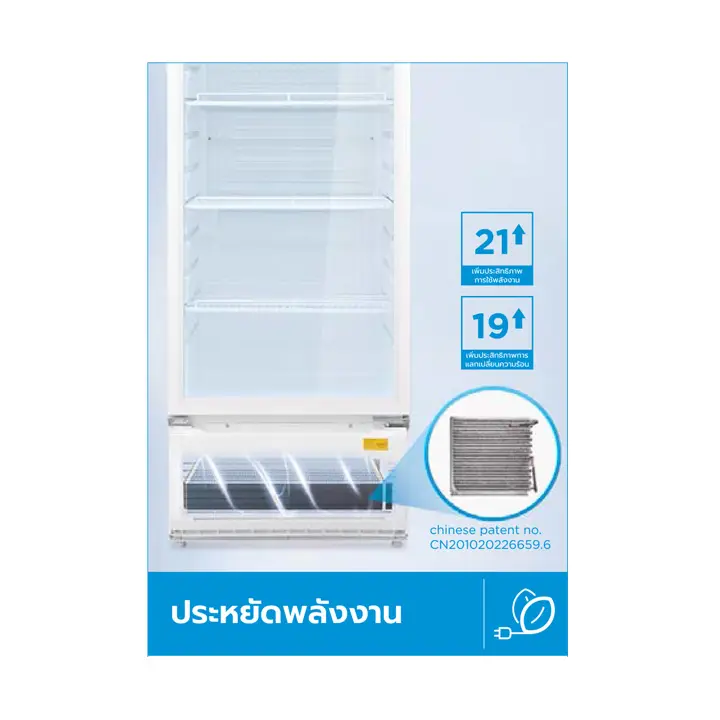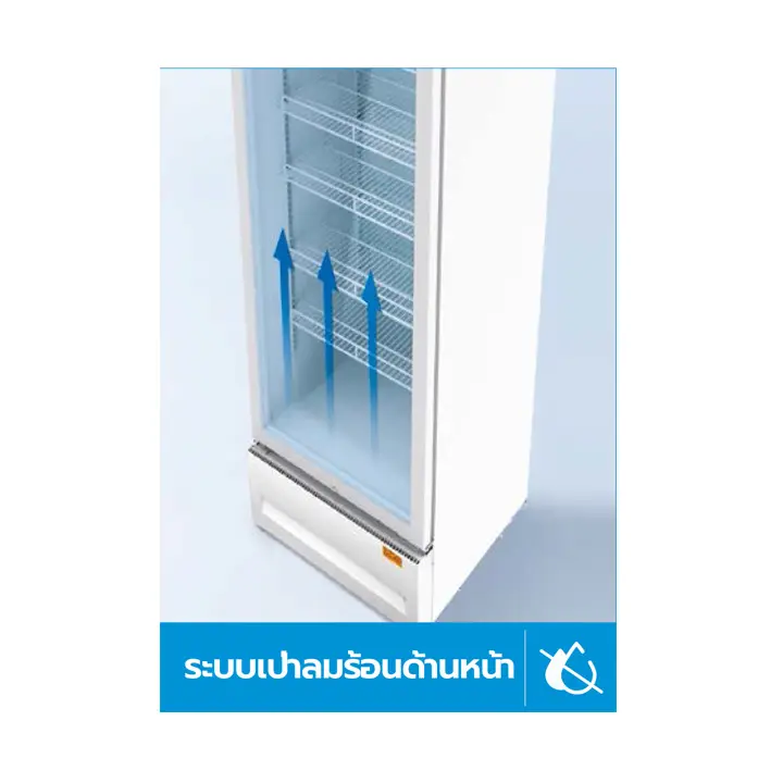 – ระบบเป่าลมร้อนด้านหน้า ช่วยลดการเกิดหยดน้ำบนกระจก ทำให้มองเห็นสินค้าภายในได้ชัดเจนตลอดเวลา