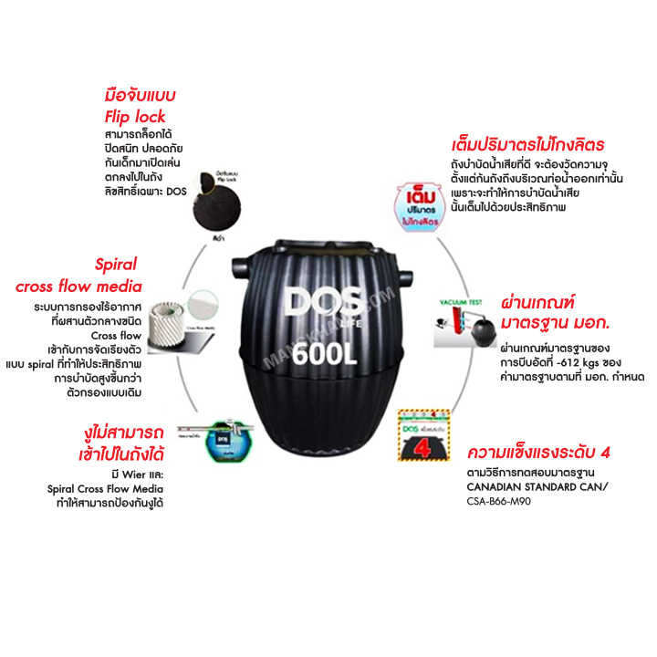 คุณสมบัติ ถังบำบัดน้ําเสีย 600 ลิตร DOS HERO รุ่น HERO 600