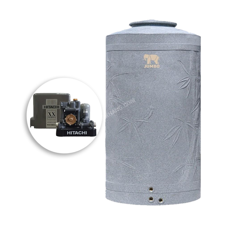 แทงค์น้ำ PE JUMBO ขนาด 1500 ลิตร + ปั๊มน้ำ HITACHI 200 วัตต์ รุ่น Bambu 1500 + hitachi wmp 200xx