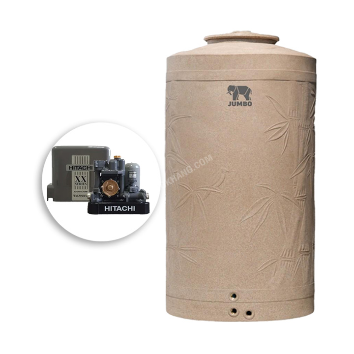 แทงค์น้ำ PE JUMBO ขนาด 1500 ลิตร + ปั๊มน้ำ HITACHI 250 วัตต์ รุ่น Bambu 1500 + hitachi wmp 250xx